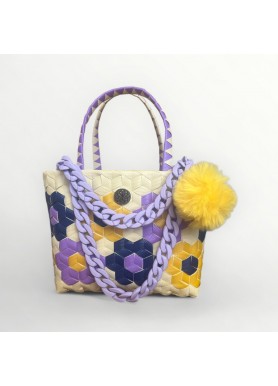 64,90 €🌴 Bolso Miami combina artesanía y modernidad en un diseño geométrico 🌈 con tonos morado, amarillo y azul. Ligero, cómodo 🤲 y lleno de estilo ✨.