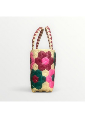 Versión Mini de nuestro icónico bolso Miami 🌴. Hecho a mano en Colombia con plástico reciclado de primera calidad ♻️. Diseño trenzado multicolor 🌈, ligero y resistente, con asas cómodas y anillas interiores para colocar correa 🔗. -