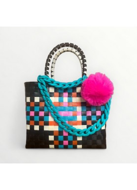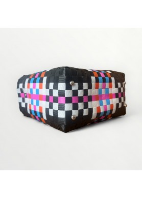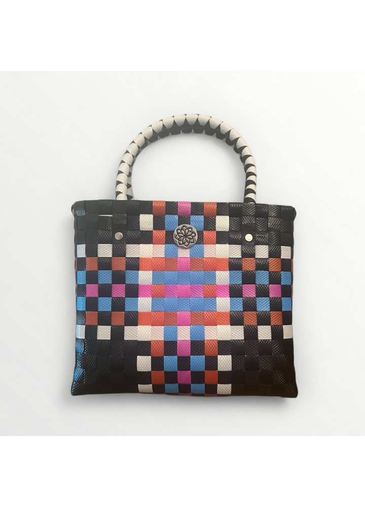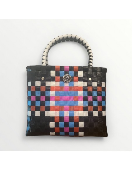 Con asas trenzadas en blanco y negro y un diseño de cuadros entrelazados, este bolso destaca por su originalidad y su carácter contemporáneo. Ideal para mujeres que valoran la autenticidad, la creatividad y el trabajo hecho a mano.