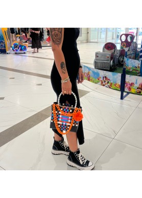 Inspirado en la magia y alegría de la costa colombiana, el Bolso Cartagena celebra la fusión entre arte y cultura. Su tejido artesanal en tonos negro, crema, azul, fucsia y naranja evoca los atardeceres, las calles coloridas y el espíritu vibrante del Caribe.