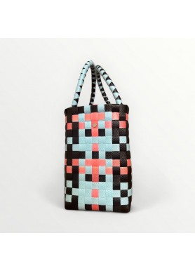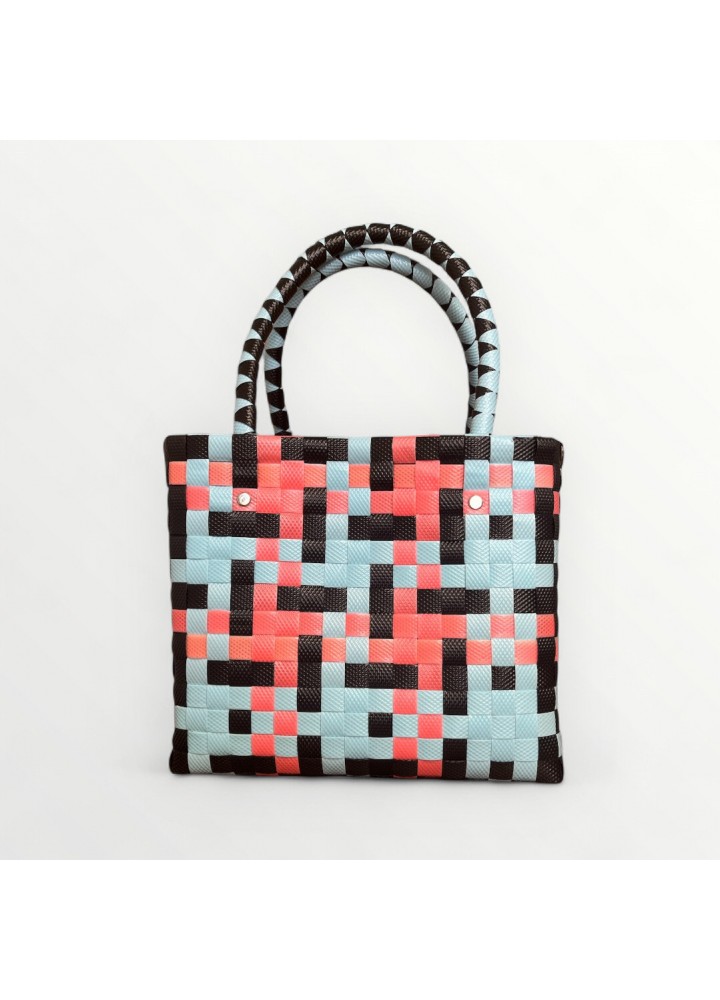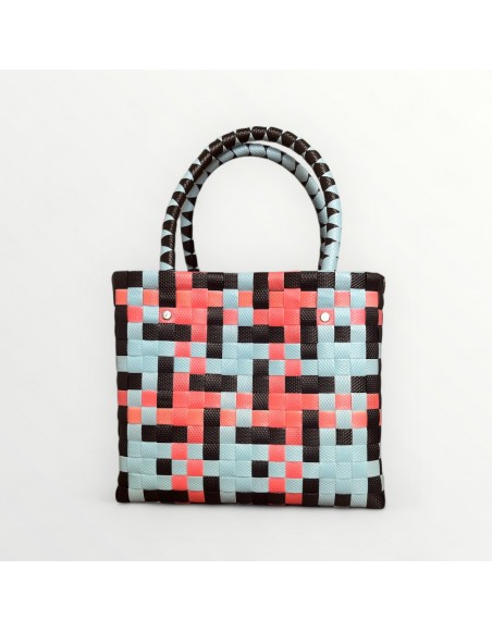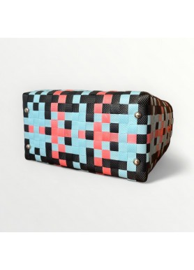 Con su diseño geométrico en tonos celeste, coral y negro, el Bolso Santa Marta es ligero, resistente y lleno de personalidad. Perfecto para acompañarte en el día a día con un toque moderno y versátil.