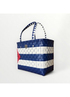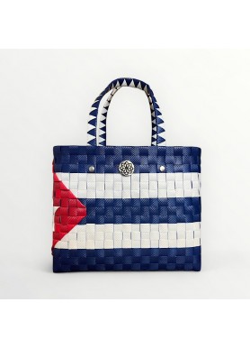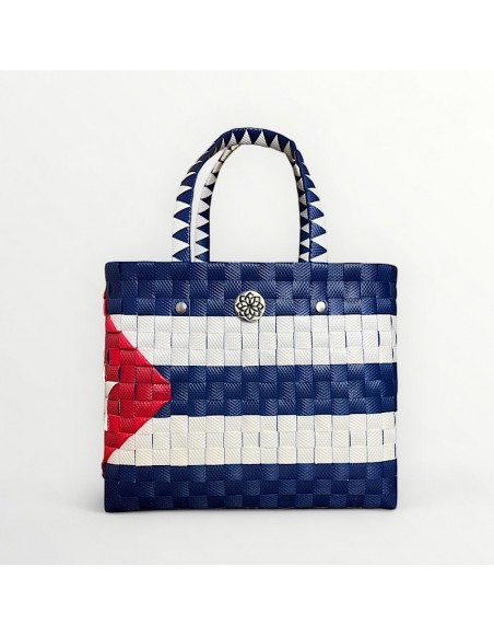 El Tote Bag Cuba celebra la identidad y la pasión de la isla con un diseño artesanal que reproduce la bandera nacional en azul, blanco y rojo. 💙🤍❤️