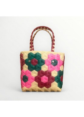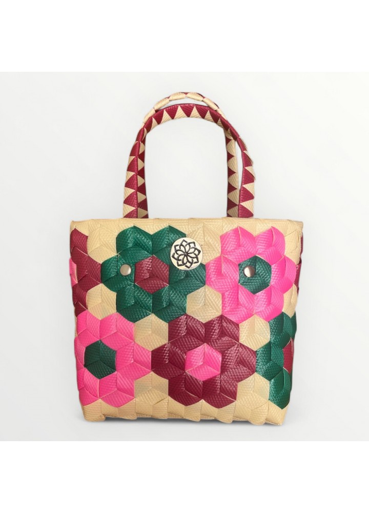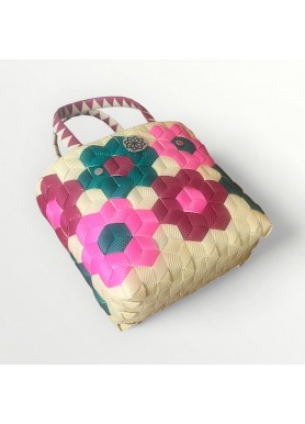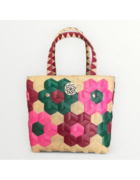 Versión Mini de nuestro icónico bolso Miami 🌴. Hecho a mano en Colombia con plástico reciclado de primera calidad ♻️. Diseño trenzado multicolor 🌈, ligero y resistente, con asas cómodas y anillas interiores para colocar correa 🔗.