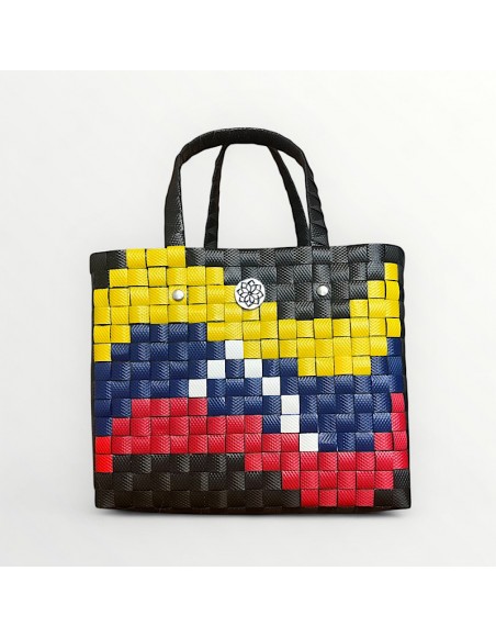 La Tote Bag Venezuela rinde homenaje a los vibrantes colores de la bandera nacional: amarillo, azul y rojo, símbolo de identidad y alegría.