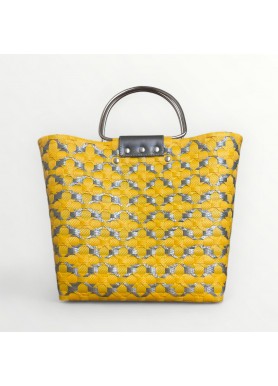 El Bolso Burdeos es una pieza que destaca por su diseño moderno y artesanal. Su vibrante contraste en amarillo con gris metálico transmite seguridad y elegancia, mientras que el delicado patrón floral en relieve realza su carácter único.