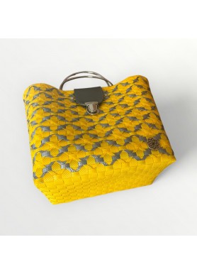 🌸 Diseño: trenzado artesanal con patrón floral en tonos amarillo y gris metálico.