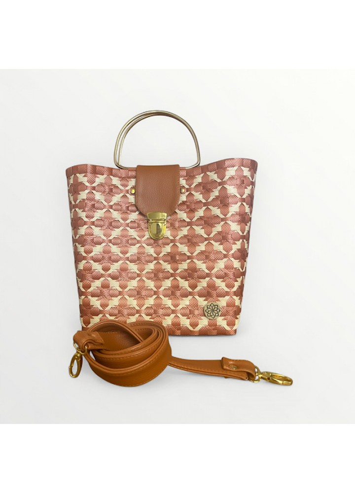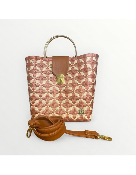 Con su diseño floral geométrico, asa metálica dorada y correa ajustable, el Bolso Cooper es el toque de elegancia y versatilidad que necesitas para cualquier ocasión.