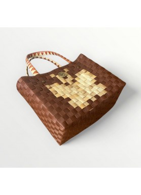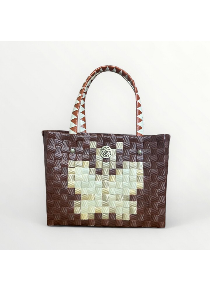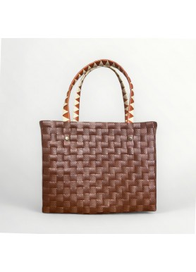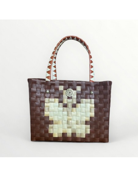 Ligero, resistente y con un diseño único en tonos tierra y crema. Un accesorio artesanal que transforma cualquier look.