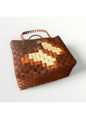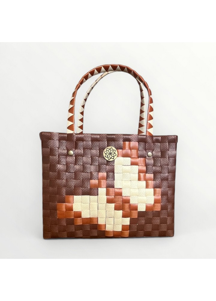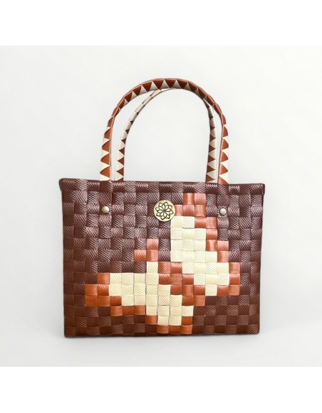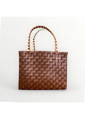 Confeccionado con tiras sintéticas de alta calidad, es resistente, ligero y cómodo de llevar. Su interior espacioso te permite organizar todo lo esencial, mientras que sus asas con detalles geométricos aportan estilo y un agarre seguro.