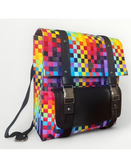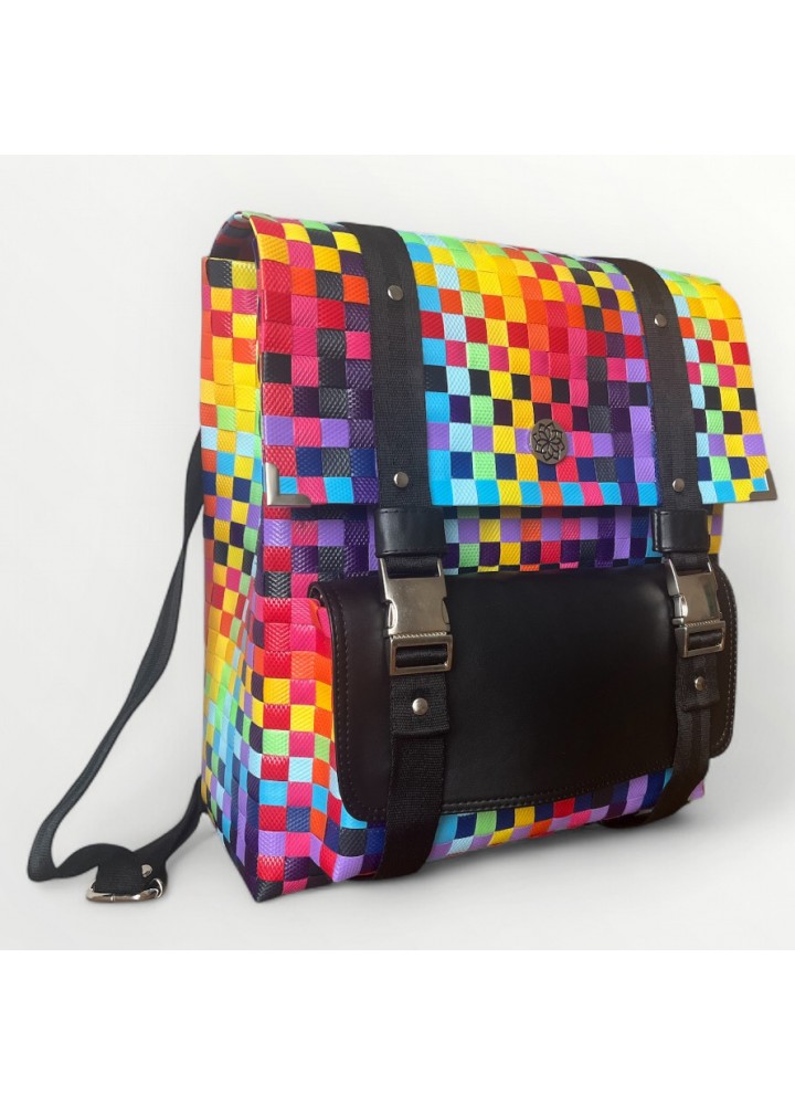 Una explosión de color y estilo que combina lo artesanal con lo urbano. Hecha a mano en Colombia con plástico reciclado ♻️, es resistente, cómoda y única. Perfecta para llevar contigo a la universidad, al trabajo o en tus aventuras diarias.
