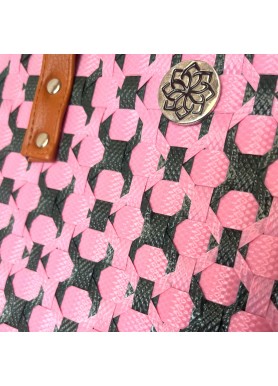 🌈 Diseño: trenzado en tonos rosa y verde con asas marrón.