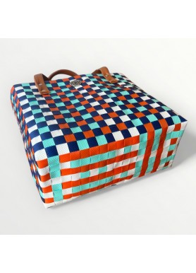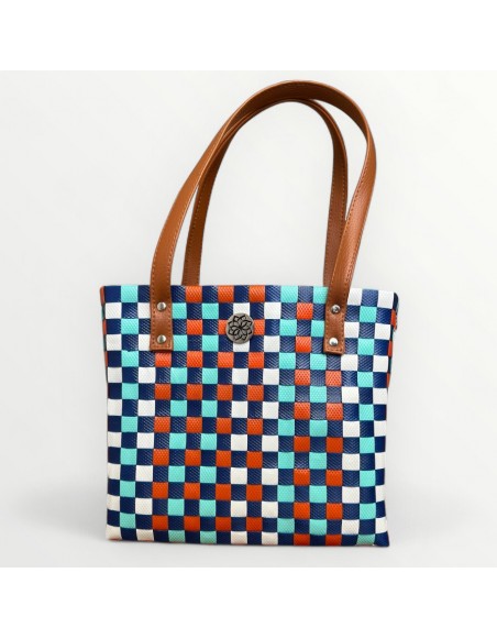 El Bolso Santorini está inspirado en la belleza del Mediterráneo y en los contrastes que hacen única a esta isla griega. Su diseño entrelazado en tonos azul marino, blanco, turquesa y naranja crea un efecto vibrante que evoca mar, sol y alegría, transmitiendo frescura y modernidad en cada detalle.