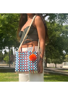 El Bolso Santorini combina frescura mediterránea y diseño artesanal en tonos azul, blanco, turquesa y naranja. Ligero, versátil y lleno de estilo. 🌊✨