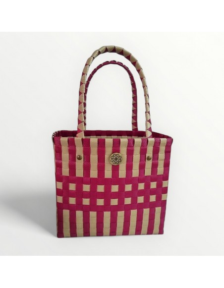 El Bolso Firenze combina el encanto artesanal con un diseño moderno y femenino. Su tejido en tonos fucsia y beige crea un patrón geométrico elegante que evoca la sofisticación de la ciudad italiana que le da nombre.