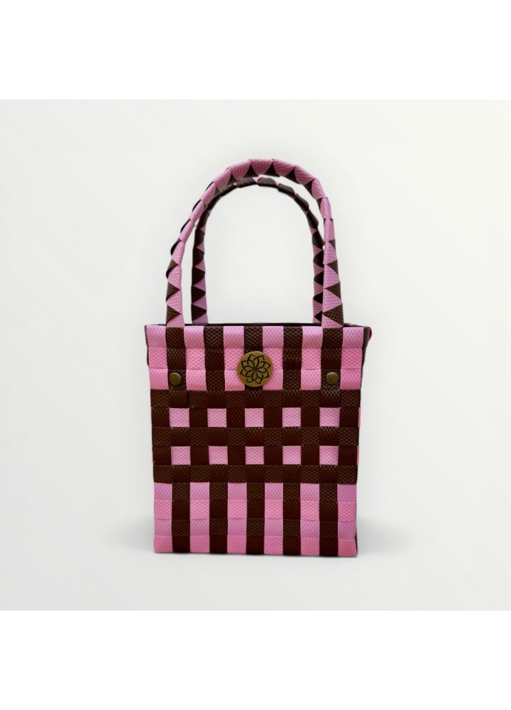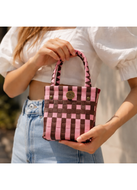 Un mini bolso único que no pasa desapercibido. Su diseño en tonos rosa y marrón aporta un toque dulce y moderno a cualquier look 💗🤎
